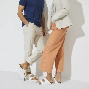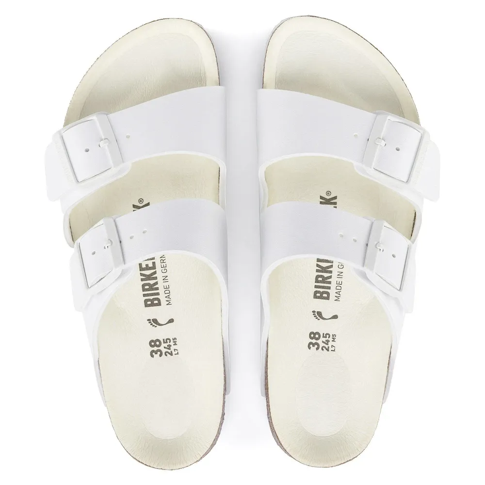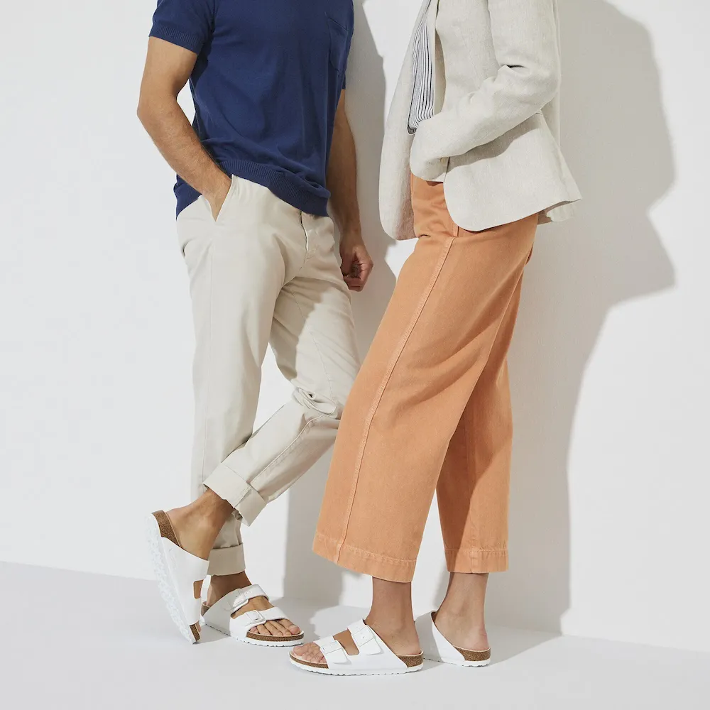 The legendary two-strap design from BIRKENSTOCK – the Arizona. Iconic style complemented with the signature comfort of the BIRKENSTOCK footbed. The color-coordinated microfiber footbed liner rounds off the shoe’s look of sophistication. The upper is made from the skin-friendly, hard-wearing synthetic material Birko-Flor®.