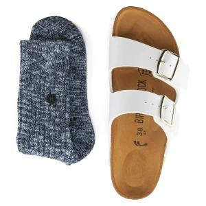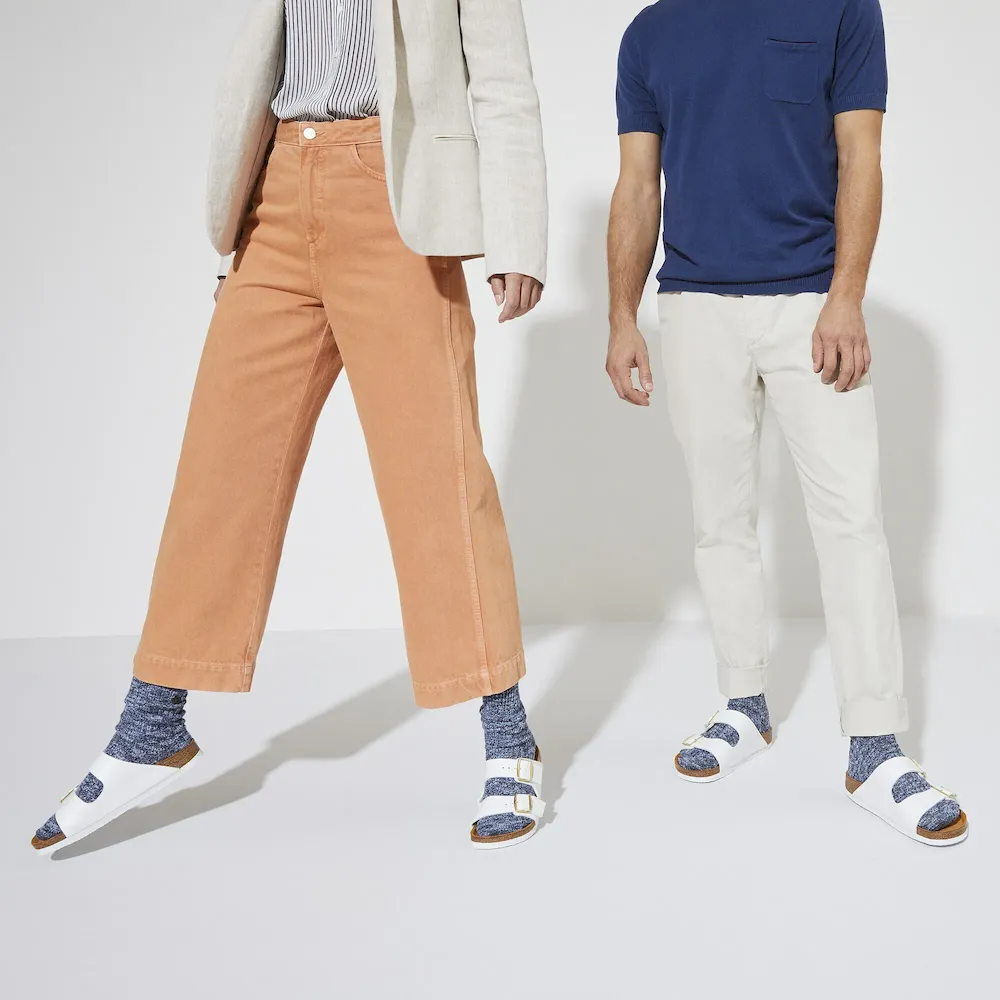 Launched in 1973, the BIRKENSTOCK Arizona has since become one of our most recognized and sought-after sandals. For its 50th anniversary, we bring back the original design for a limited-edition anniversary collection, with its buckles, footbed stamp, outsole and packaging all inspired by the 1973 original.To celebrate 50 years and the “Socks & ‘Stocks” look made popular by our fans, each style comes with a retro-inspired pair of socks to complete the throwback feel.
