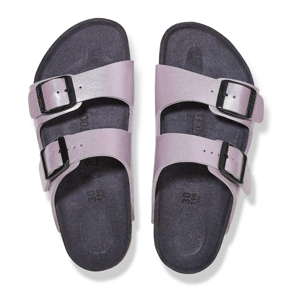 The all-time icon, sized down and shined up just for kids. A statement finish gives the classic Arizona sandal a silky sheen they’ll love to show off. Complete with classic BIRKENSTOCK design elements, like adjustable buckles and a contoured footbed to help keep little feet comfortably on the move.