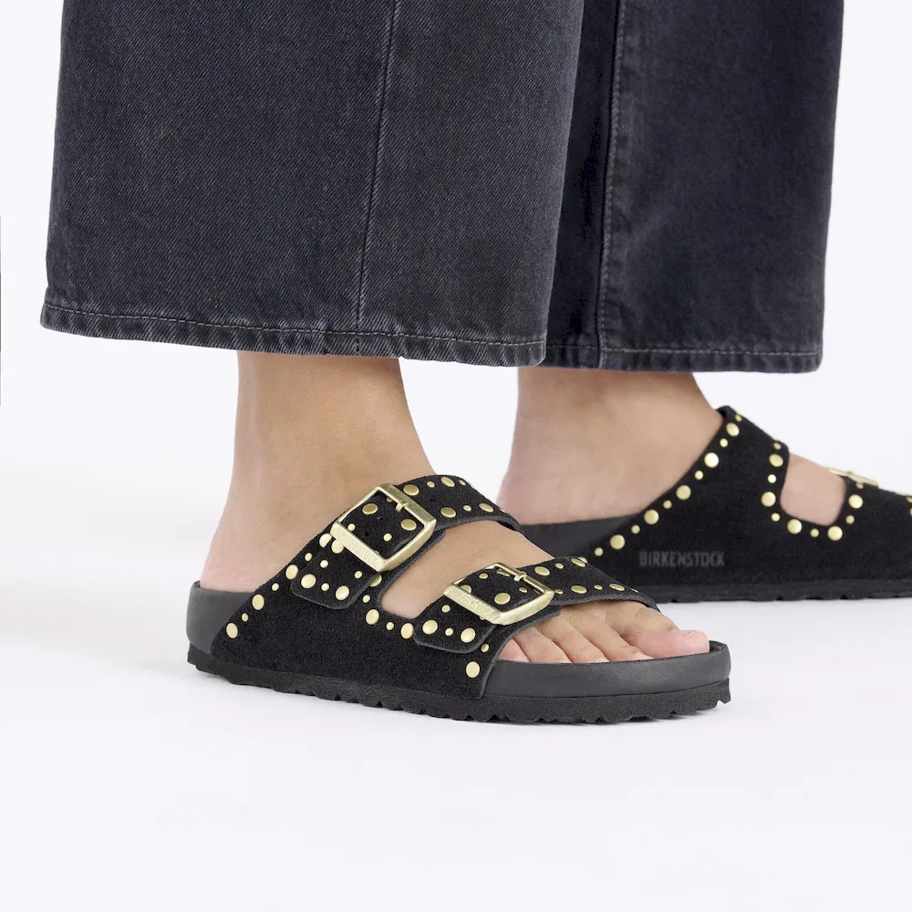 An icon of timeless design and legendary comfort, the Arizona sandal has been defining style since 1973. Metallic rivets stud its classic suede upper in an eyecatching design, precisely placed to leave the underside smooth for comfortable wear. It rests on an Exquisite footbed fully lined in smooth leather for a supportive, luxe-to-the-touch feel.