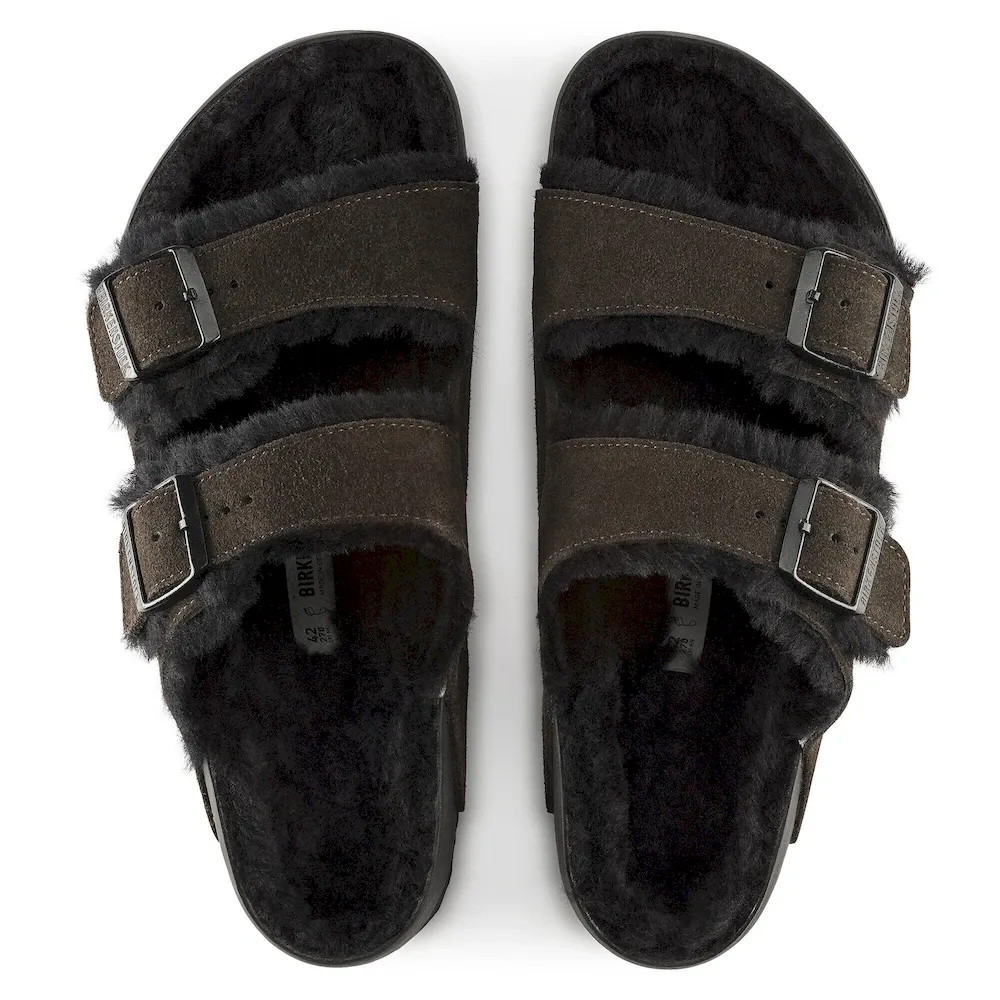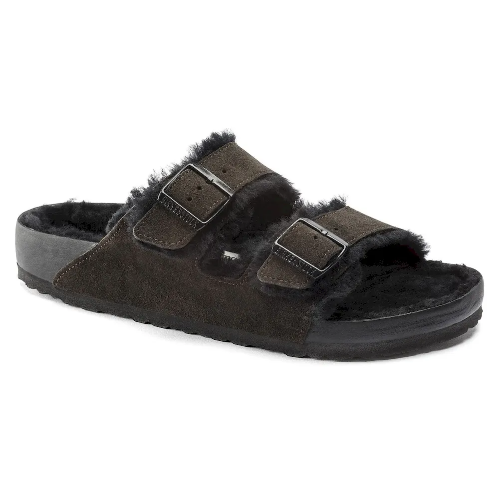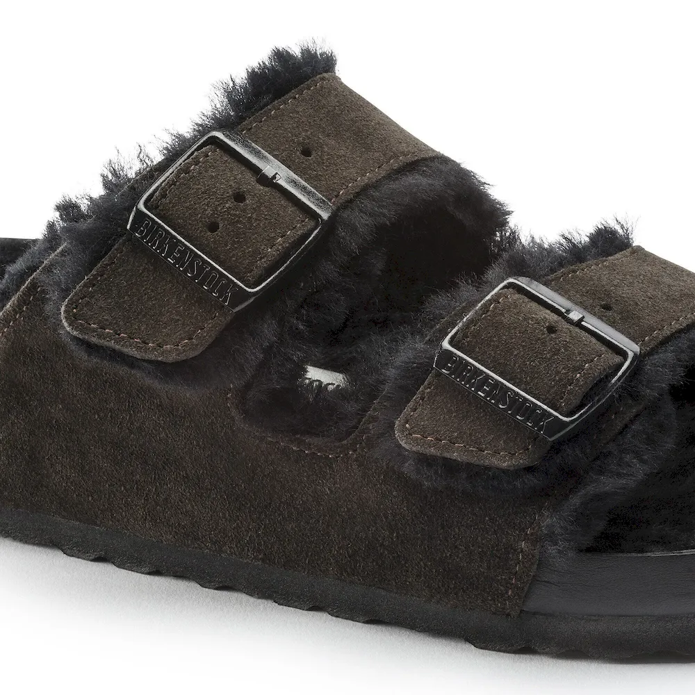 The legendary two-strap design from BIRKENSTOCK – the Arizona. Iconic style with the signature comfort of the BIRKENSTOCK footbed. Both the upper and the footbed are fully lined in genuine shearling creating both a cozy and fashionable look. Featured in genuine high-quality suede – these sandals are perfect for chilly, winter evenings.