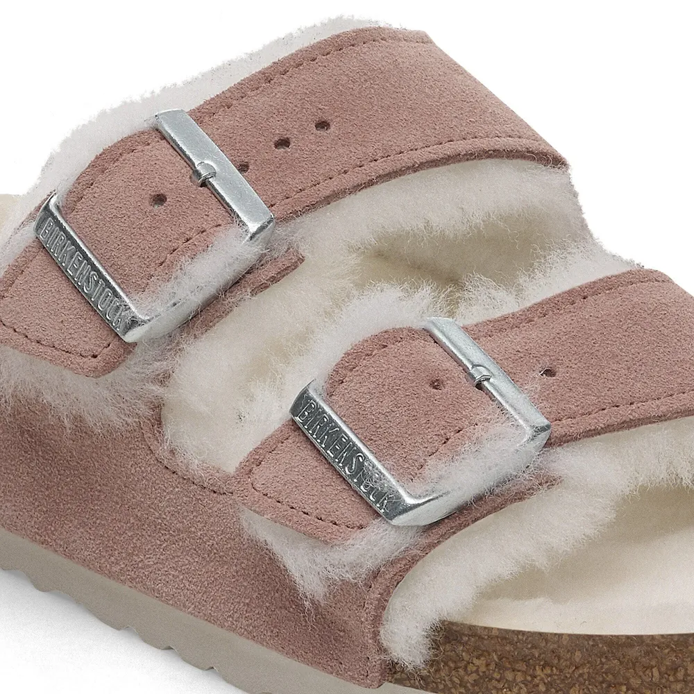 The legendary two-strap design from BIRKENSTOCK – the Arizona. Iconic style with the signature comfort of the BIRKENSTOCK footbed. Featured in genuine high-quality suede – and is now available in an extra cozy version thanks to a soft, genuine shearling lining on the anatomically formed cork-latex footbed and straps. These sandals are perfect for chilly, winter evenings.