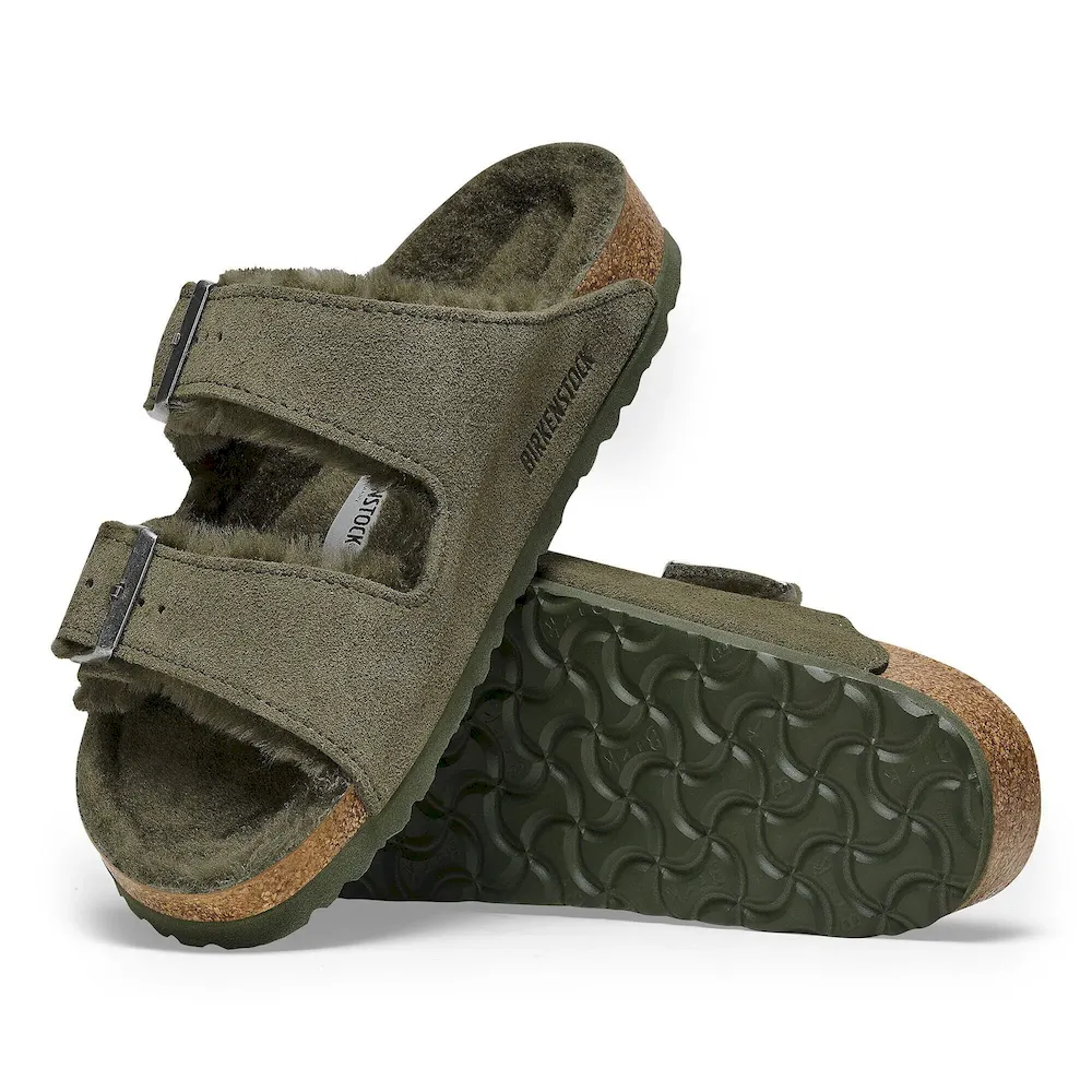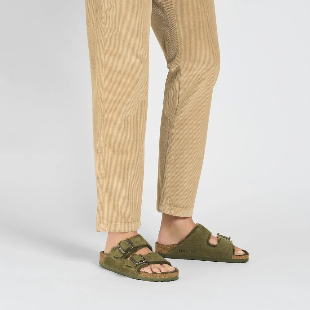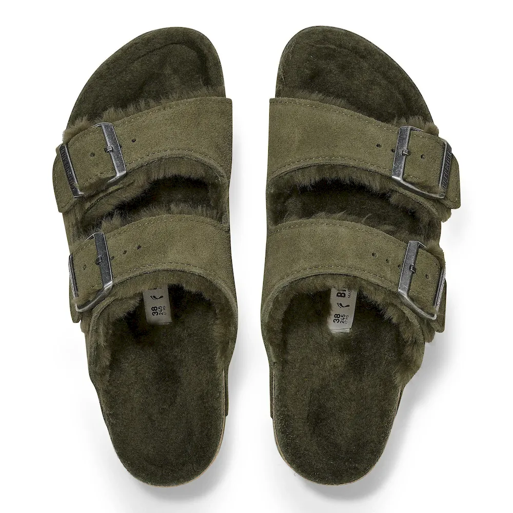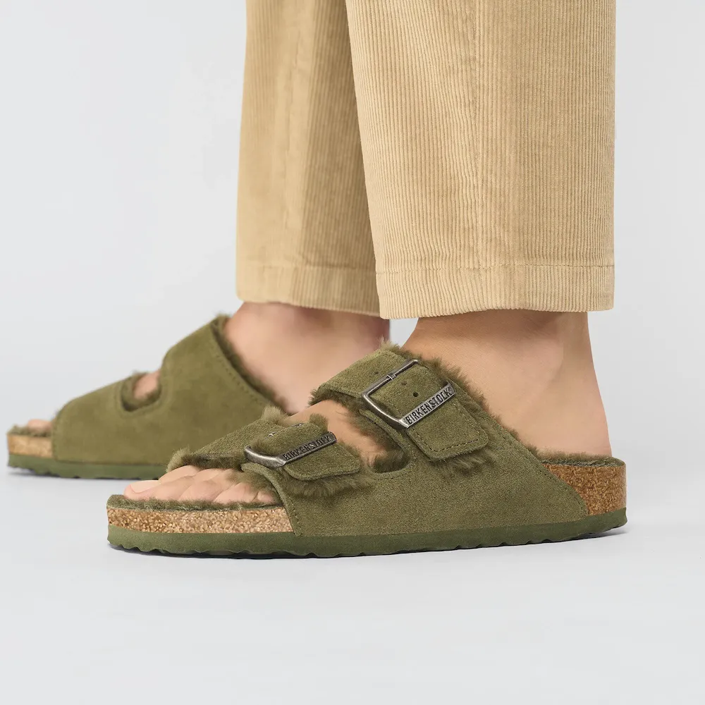 The Arizona sandal, made cozy for the colder months. Classic suede lends a velvety feel that continues on the inside. The style is fully lined in genuine shearling, right down to the original contoured footbed. A soft, supportive landing every time.