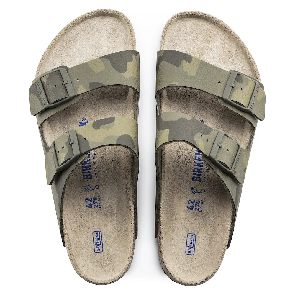 The legendary two-strap design from BIRKENSTOCK – the Arizona. This version also boasts an additional foam layer, its soft footbed offering extra comfort. Shown in a new camouflage patterned Birko-Flor®