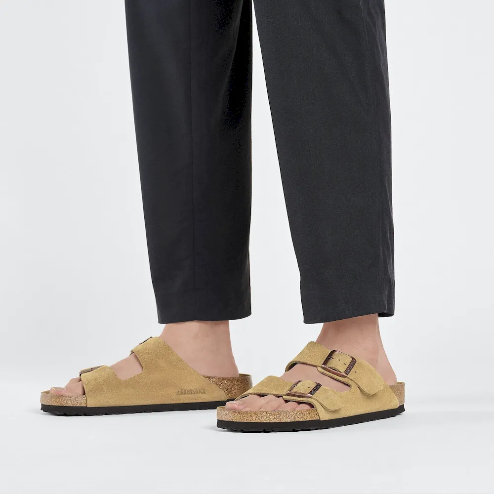 An icon of timeless design and legendary comfort, the Arizona sandal has been defining style since 1973. Classic, velvety suede gives the laid-back look that every season, any style appeal. Complete with legendary BIRKENSTOCK design elements, like a contoured cork-latex footbed for the ultimate in support.