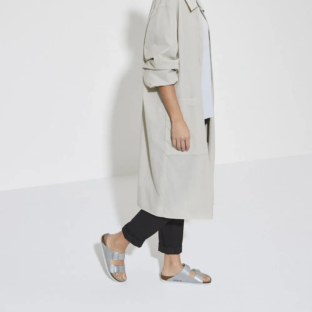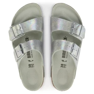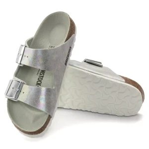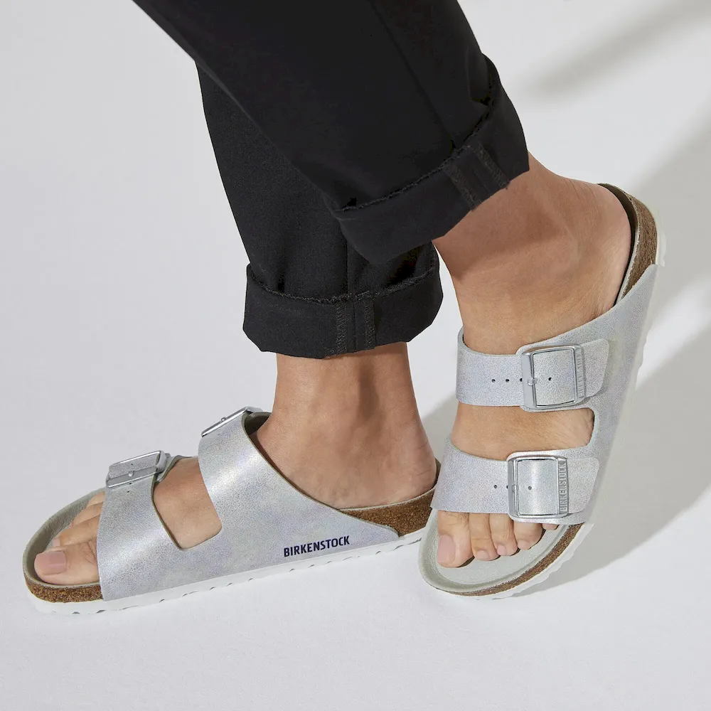 The legendary two-strap design from BIRKENSTOCK – the Arizona, now in a vegan material. Iconic style with the signature comfort of the BIRKENSTOCK footbed. This version features an iridescent, silky sheen with multi-colored shimmer. The upper is made from skin-friendly microfiber.
