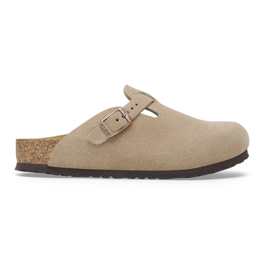 Tiny icon, classic comfort. The Boston clog is reimagined for kids in classic suede, with an adjustable buckle for just the right fit. Designed on an original contoured footbed, these clogs unlock play-all-day fun in just their style.
