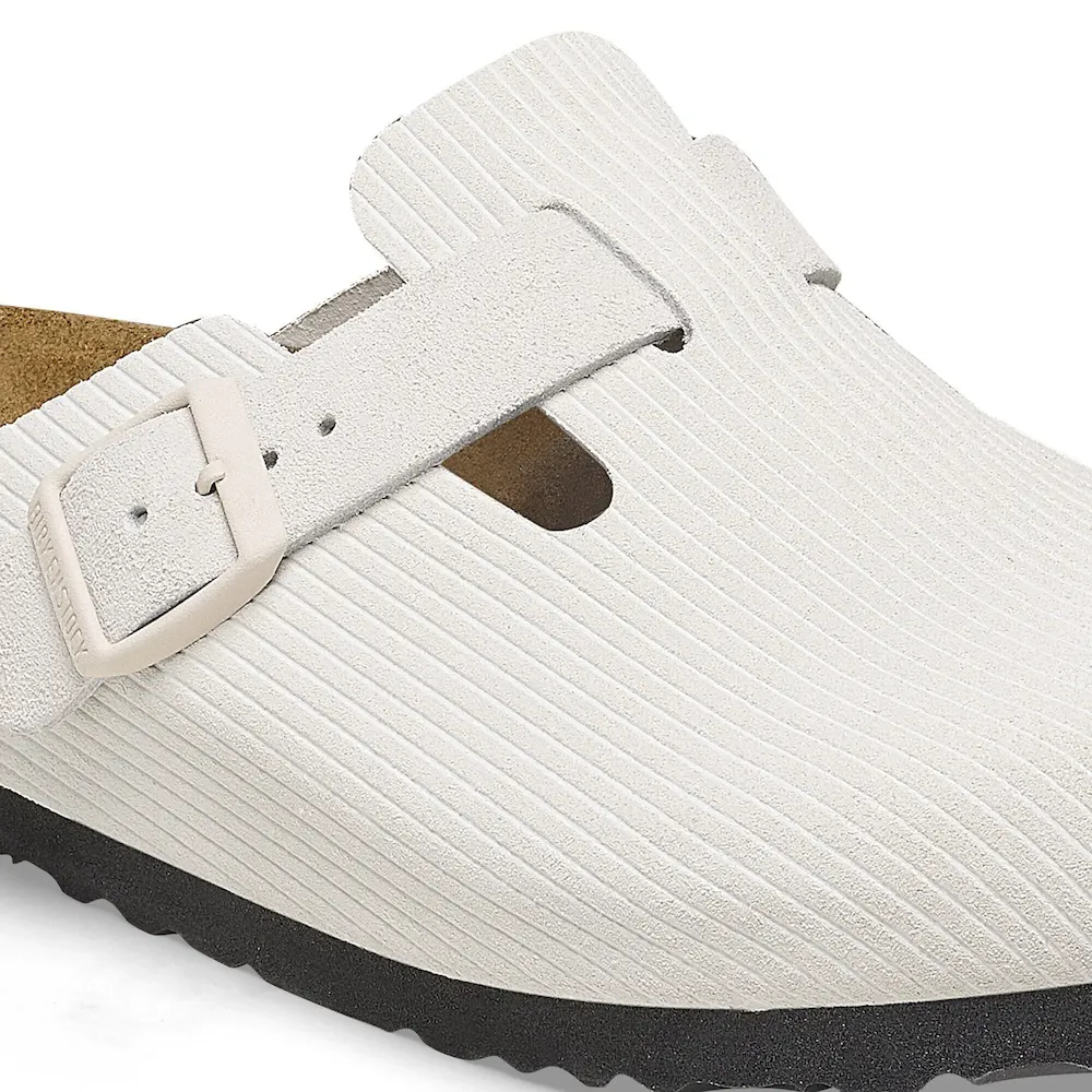 So classic and consistently comfortable, the Boston clog has become a coveted, year-round favorite. This season, embossed suede takes on the style of corduroy for a crafted quality that’s as soft as it is durable. It’s all grounded in the comfort of our contoured footbed, designed to shape to you with wear.