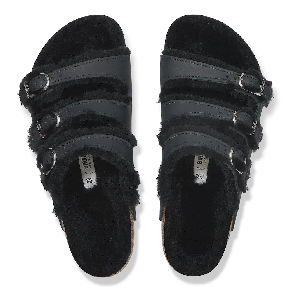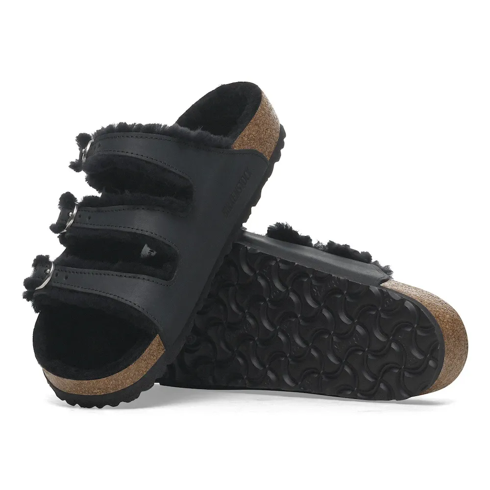 The Florida Fresh – strappy style meets signature comfort. This BIRKENSTOCK slide features three slender, adjustable straps and a contoured cork/latex footbed that forms to the shape of your foot. This version is lined with especially cozy shearling. With D-buckles and a color-coordinated footbed to round off the overall look. The upper is made from extra thick, oiled nubuck leather.
