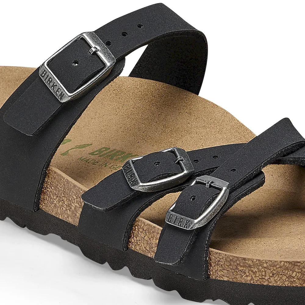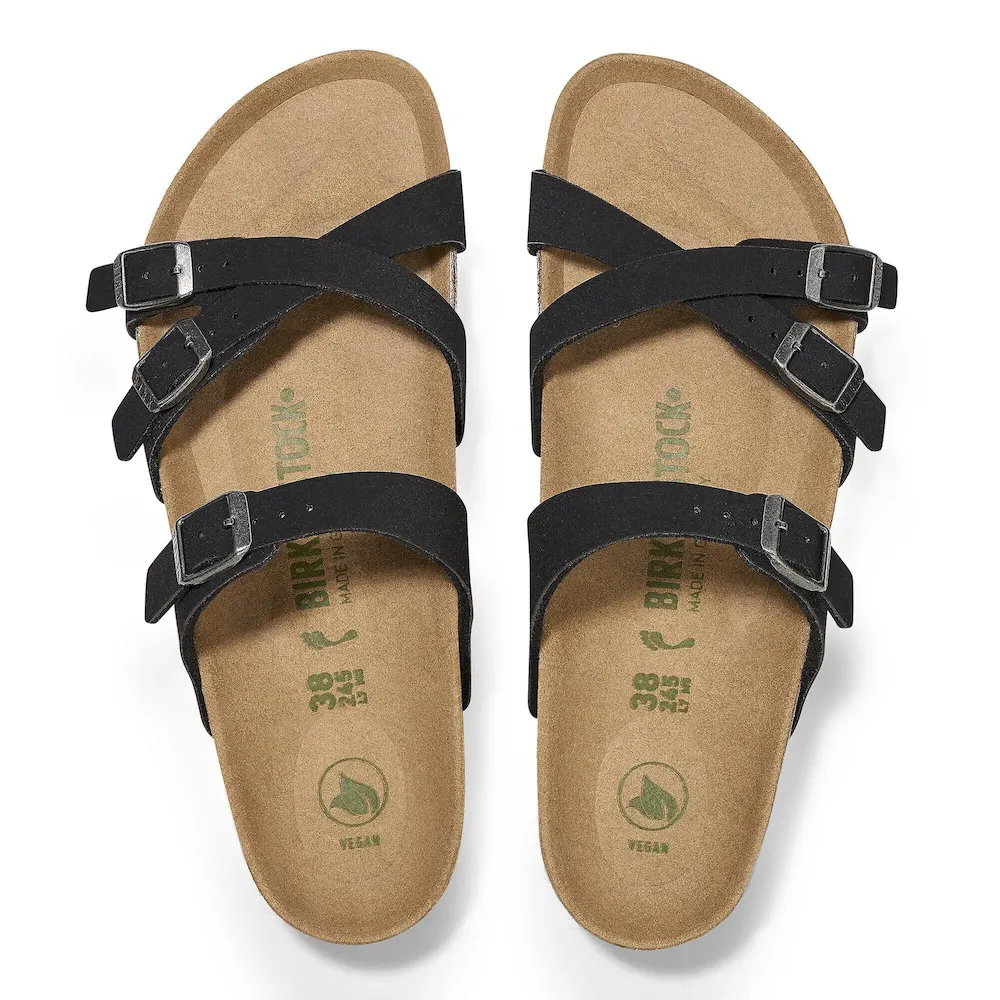The BIRKENSTOCK Franca is an elegant model designed with slim, stylish crisscrossed straps. Featuring an impressive combination of design and wearability for all day comfort. Now available in vegan materials. The upper is made from the skin-friendly, hard-wearing synthetic material Birkibuc.
