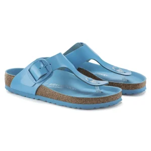 A modern thong sandal from BIRKENSTOCK with amplified buckle accent—the Gizeh Big Buckle. The semi-exquisite footbed is fully lined with soft piumato leather, making it exceptionally comfortable. The upper is made from high-quality natural leather with a high shine finish.