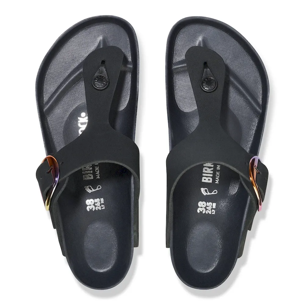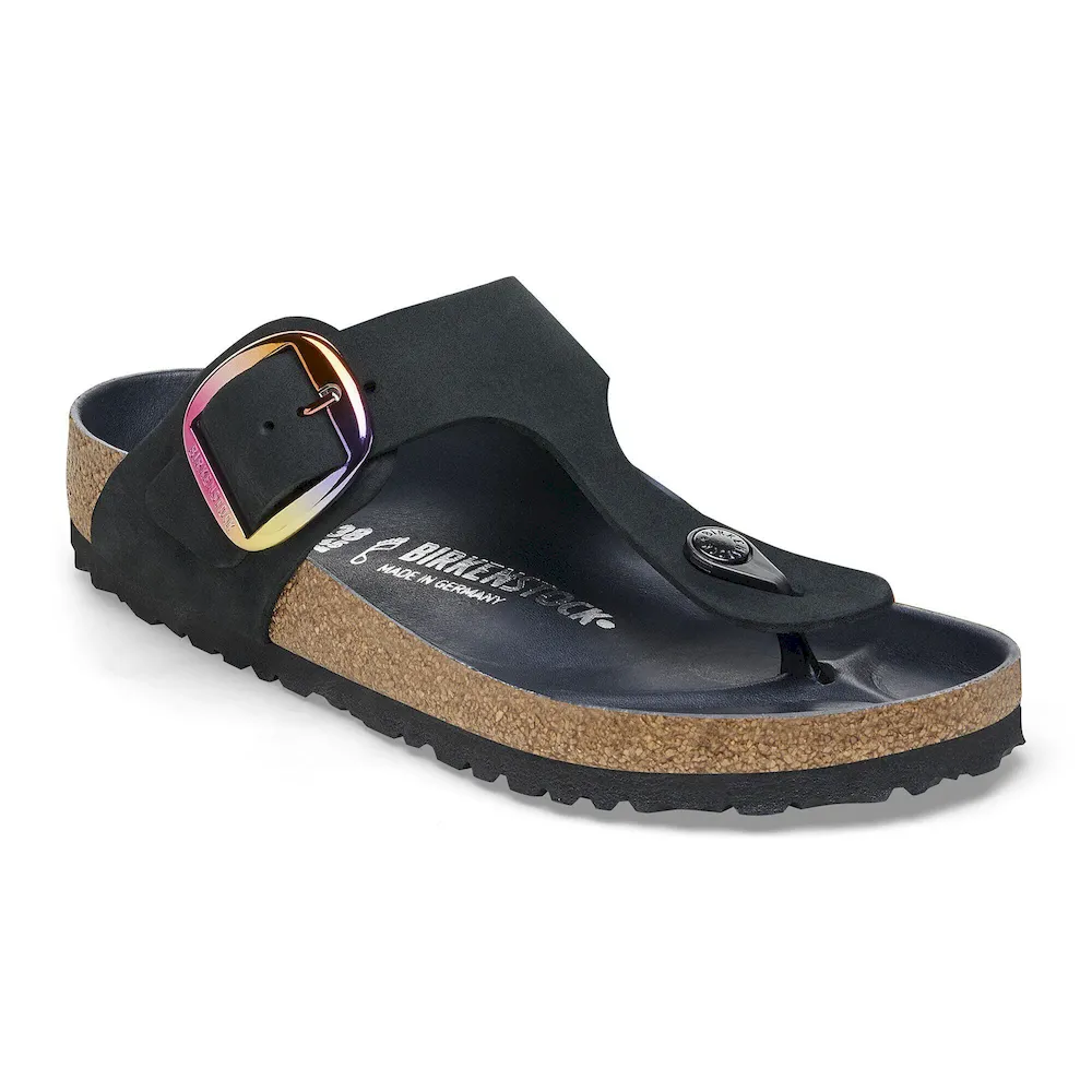 A BIRKENSTOCK® icon since ’83, the Gizeh thong sandal is all elegance and comfort. This season, an oversized buckle accessorizes soft nubuck leather for any occasion. Equally sophisticated and supportive, it rests on the contoured footbed you’ve loved since forever.