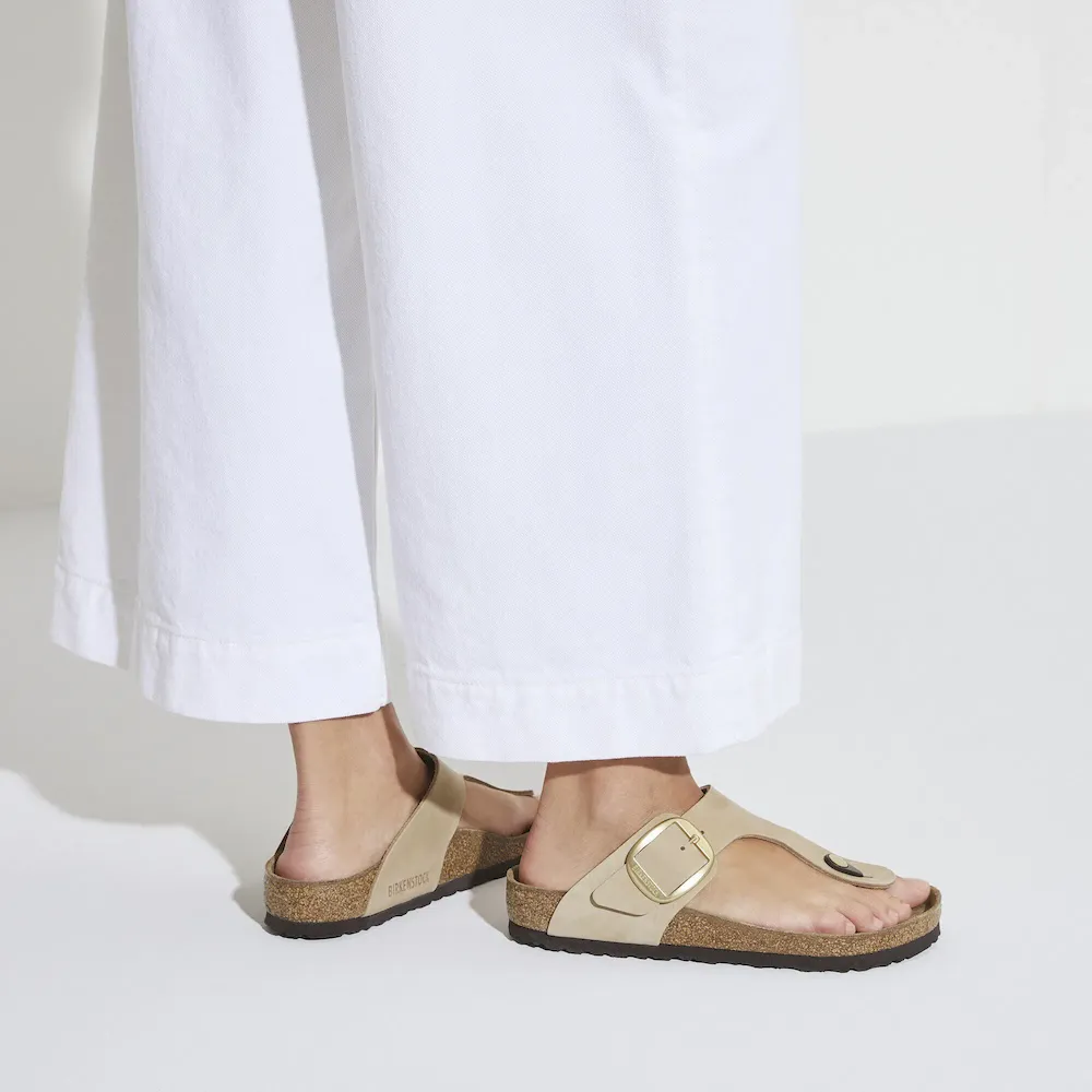 Meet the brand new Gizeh Big Buckle. This classic thong sandal gets a fresh update with an elegant amplified buckle. Feminine style that’s comfortable and easy to wear. The footbed is lined with a soft suede & the upper is made from high-quality, nubuck leather.
