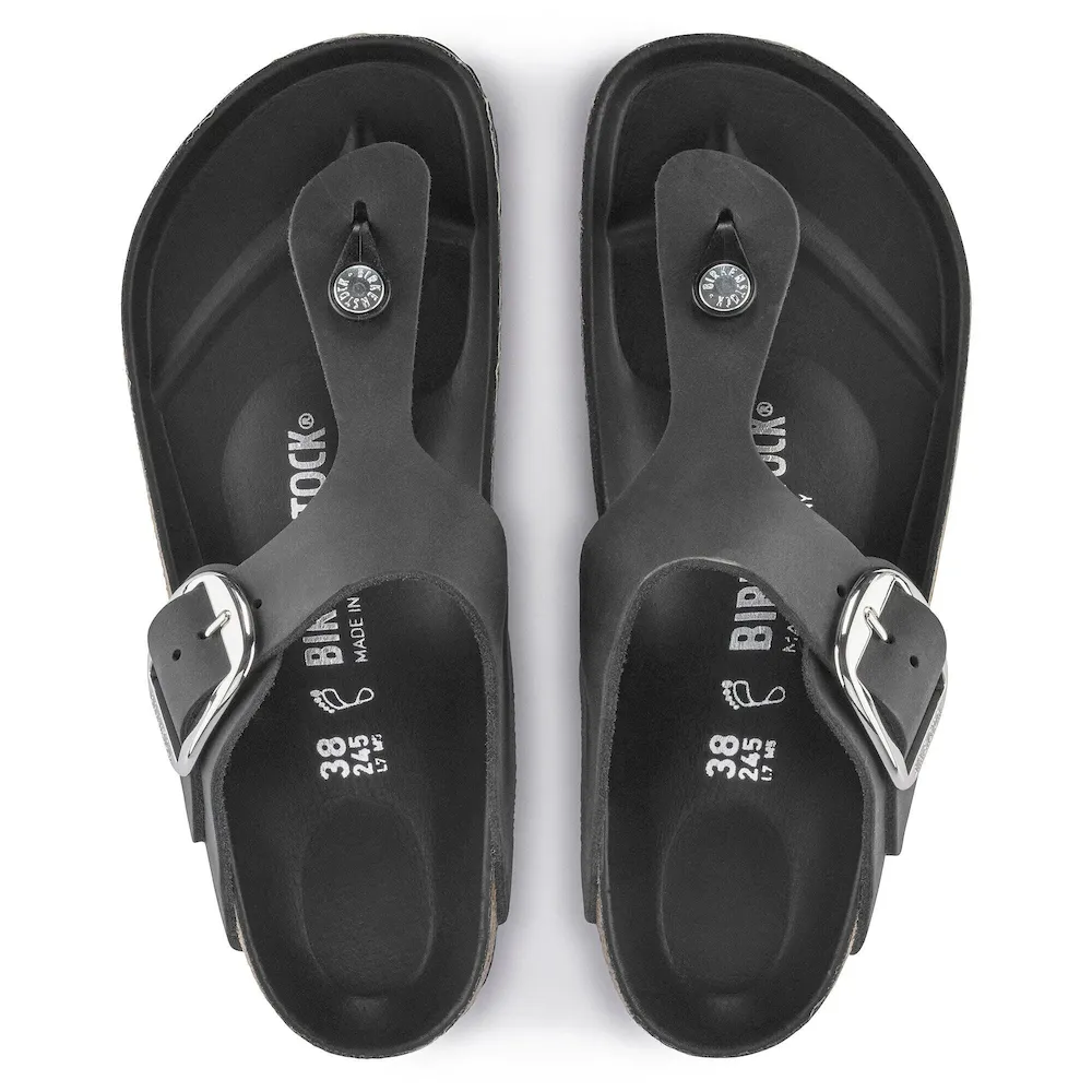The modern thong sandal from Birkenstock. The Gizeh is an iconic classic with signature support and a refined, minimalist style. The Big Buckle version features an oversized buckle and tonal footbed lining. The upper is a soft yet durable oiled leather.