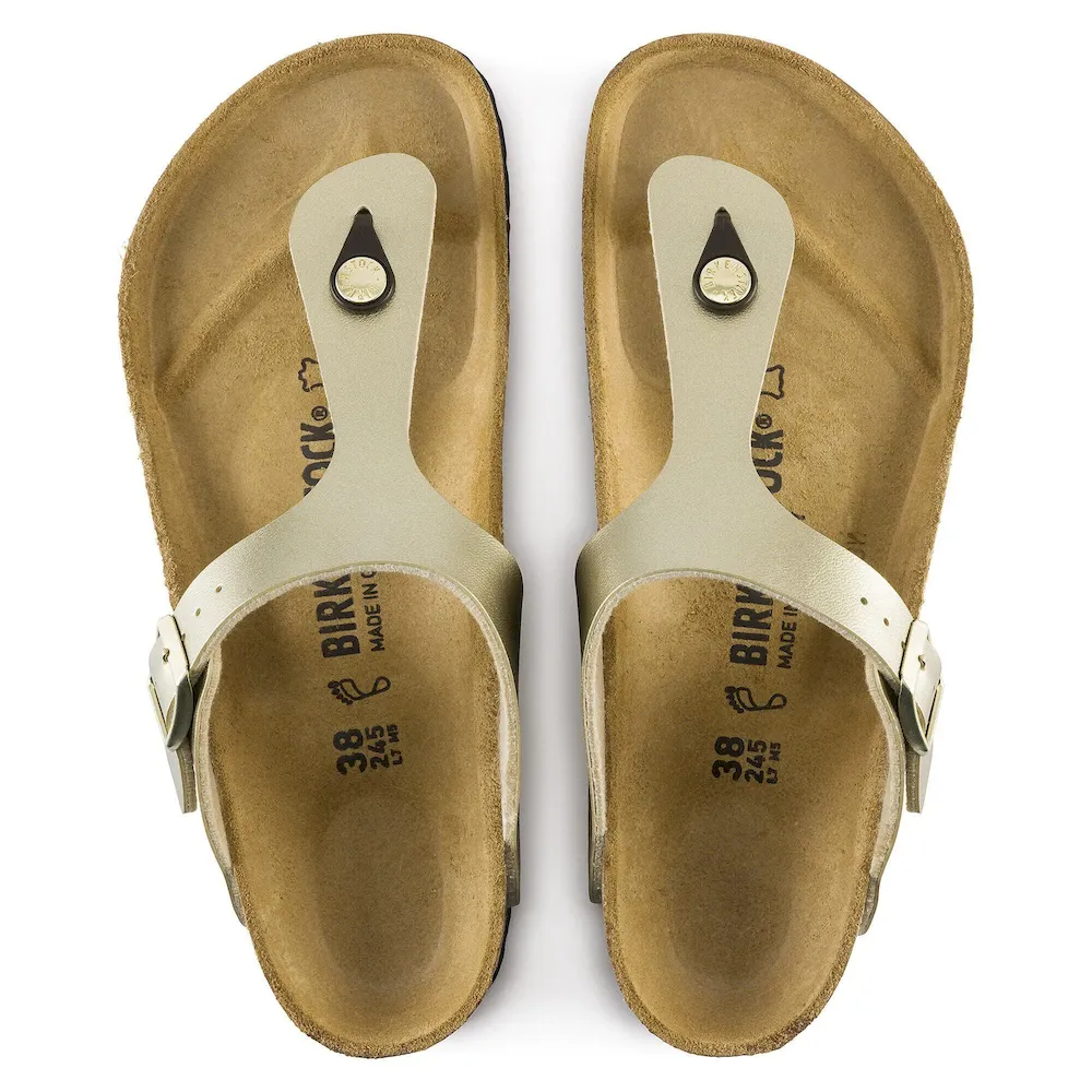 The Gizeh brings legendary comfort and elegant detailing to the thong sandal. A shimmery, metallic finish shines up the iconic style to stand out from the rest. Complete with classic BIRKENSTOCK design elements, like a contoured footbed for the ultimate in support.