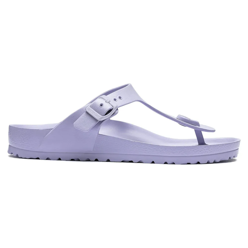 The BIRKENSTOCK Gizeh is our classic thong sandal. Modeled on the cork original, this sandal is made from ultra lightweight and highly flexible EVA. These colorful sandals are shock-absorbent, waterproof, and skin-friendly. Wear them at the beach, in the garden, or in wellness and spa areas. It’s the perfect addition to your classic BIRKENSTOCK sandals.