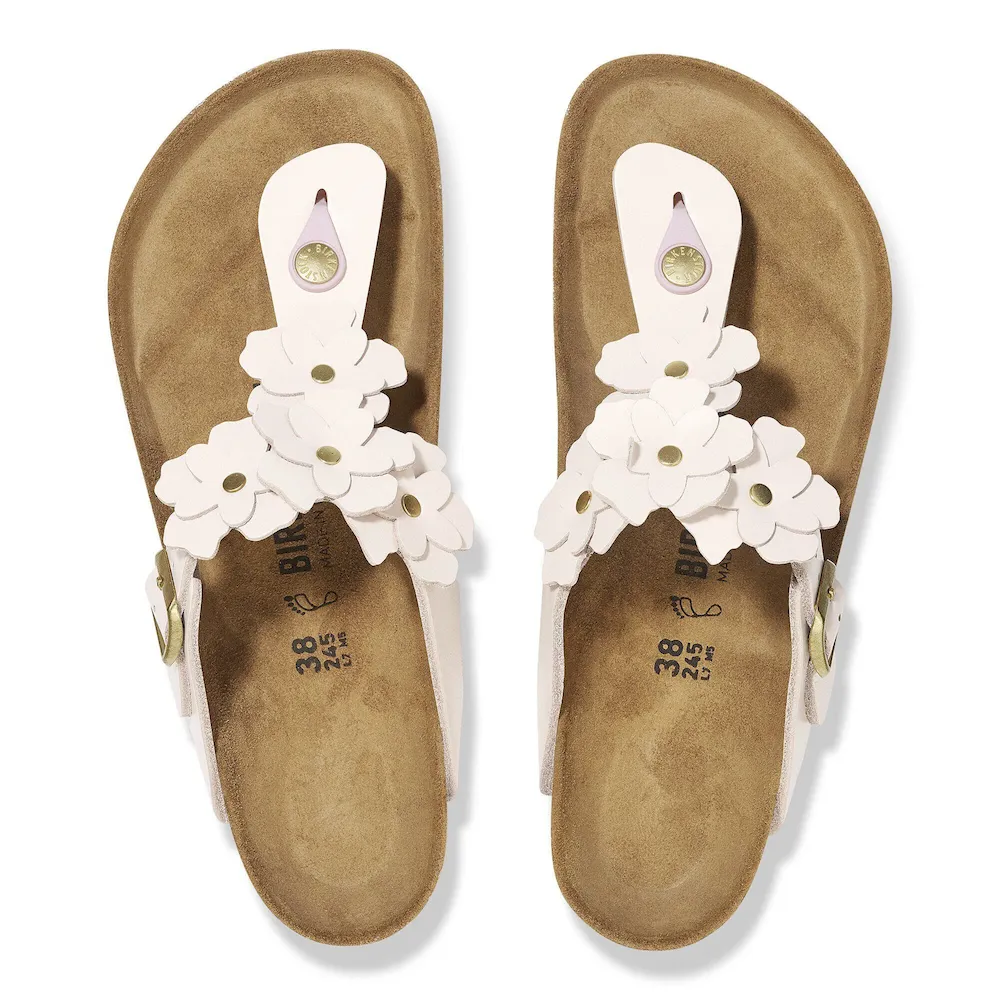 Appliqué flowers make a garden party of this season’s Gizeh sandal. Pollinated with gold, especially soft leather sets the scene for cut blooms. The style stays rooted in original BIRKENSTOCK® comfort, with a contoured cork-latex footbed for the ultimate in support.