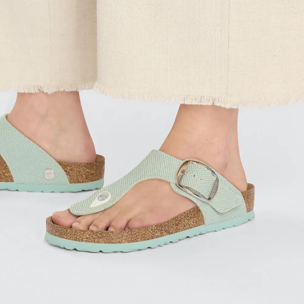 The Gizeh sandal refines the fit with legendary comfort and elegant detailing. The iconic style is a natural in vegan cotton canvas. A gleaming oversized buckle brings the style together with a statement finish that reads coastal chic. It all rests on an original contoured footbed for the ultimate in support.