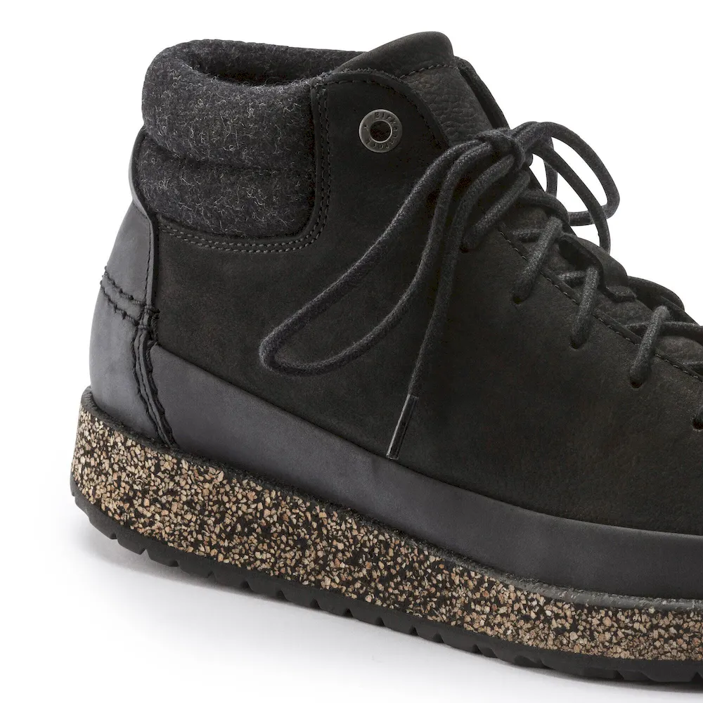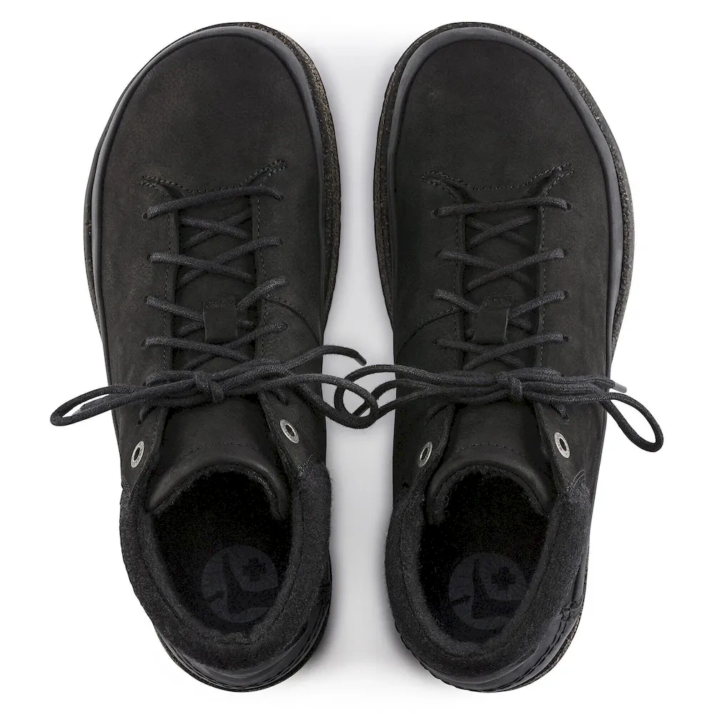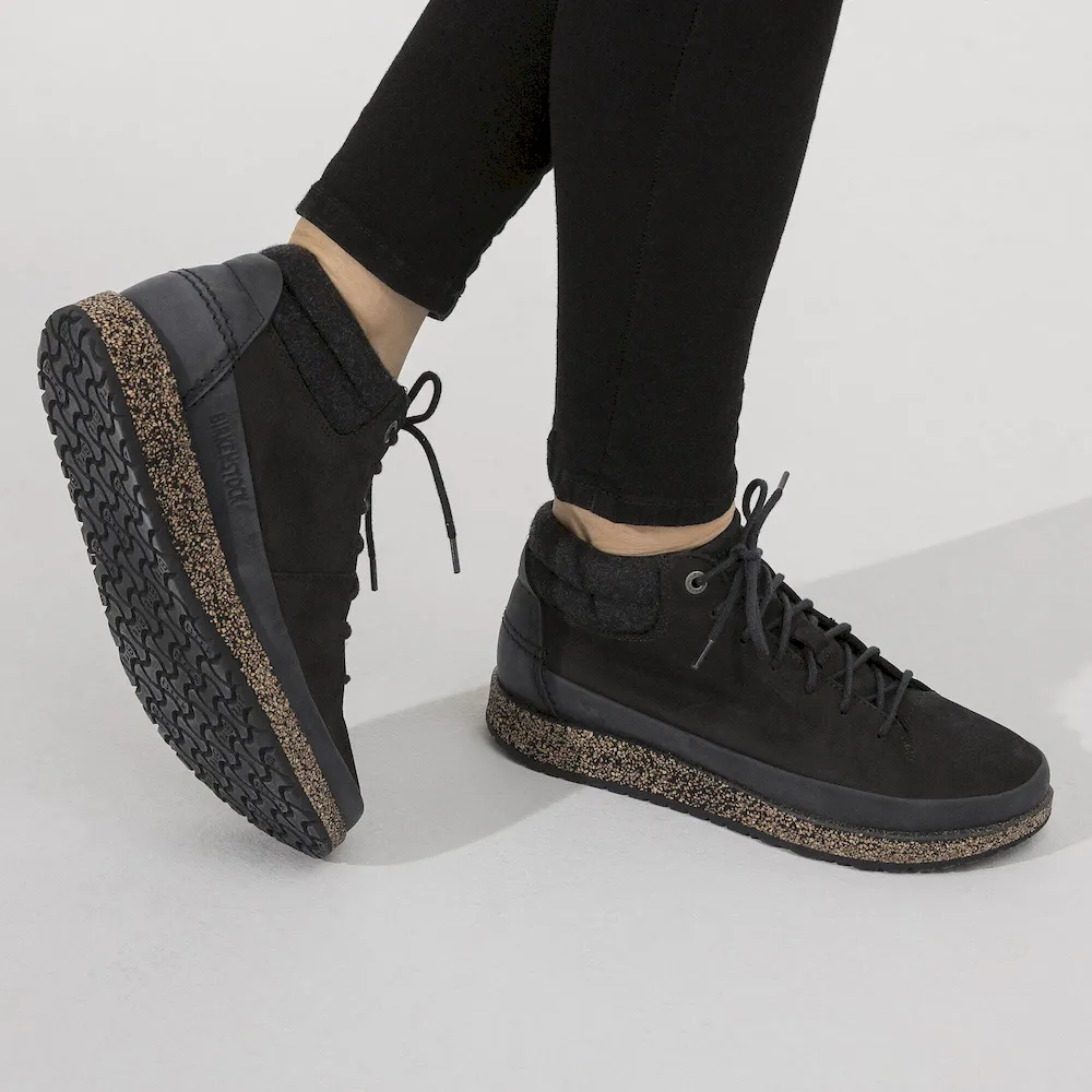 Presenting the BIRKENSTOCK Honnef High – our newest street smart ankle boot engineered completely around our new Deep Blue Footbed. The four part footbed includes a moisture wicking microfiber liner, cork and jute layers for optimum arch support and a PU base for added shock absorption and forefoot cushioning. The sporty lace up style is perfect for your most active days, whether that’s all day around town or on your next travel adventure, The oiled nubuck upper is durable and easy to clean, fully adjustable lacing for optimum fit, wool synthetic lining for internal temperature control and injected rubber outsole for added grip and durability.