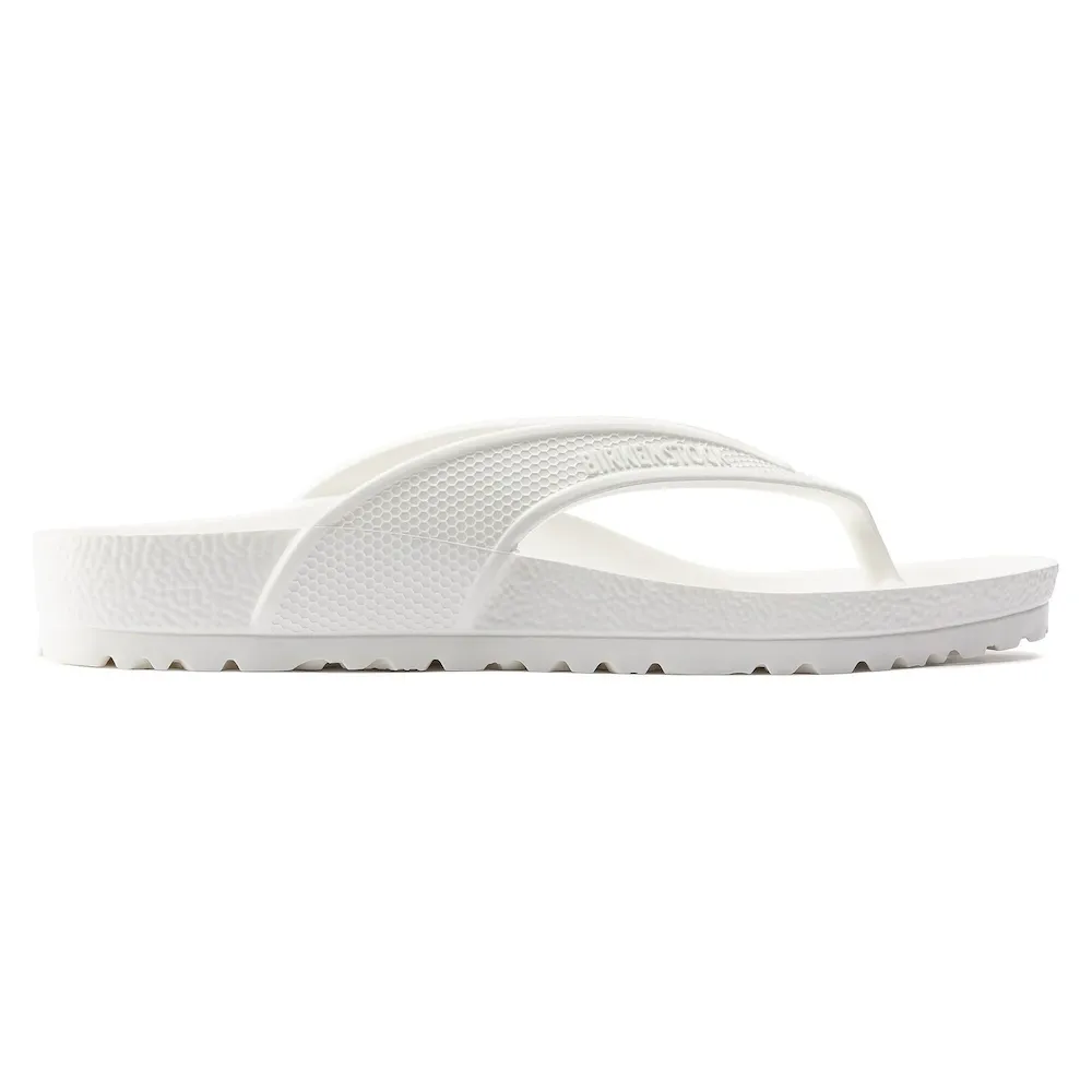 The BIRKENSTOCK Honolulu is a sporty thong sandal with embossed straps. Modeled on the cork sandal, this sandal is made from light, flexible and waterproof EVA.