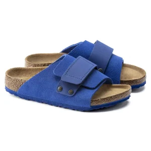 The BIRKENSTOCK Kyoto stands out with its compact design and individually adjustable hook and loop closure for a slipper like fit and feel. It can also be worn as a mini-me style with mom and dad! The upper is made from especially soft suede.
