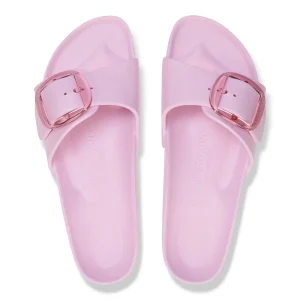 This is a new and modern interpretation of the BIRKENSTOCK classic Madrid. This version features our popular Big Buckle made from a stainless synthetic material and makes an impression with its durability and minimalist design. Modeled on the cork sandal, it is made from the ultra-lightweight and highly flexible synthetic material EVA. The high-quality, odor-neutral EVA has been tested for harmful substances and combines numerous positive attributes: it is very light, highly elastic, shock-absorbent, water-resistant, and skin-friendly.