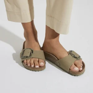Effortlessly elegant. This season, the iconic Madrid sandal goes vegan with a 100% natural cotton canvas upper. A printed oversized buckle brings the style together with a statement finish. Complete with legendary BIRKENSTOCK design elements, like a contoured cork-latex footbed that shapes to you for custom support.