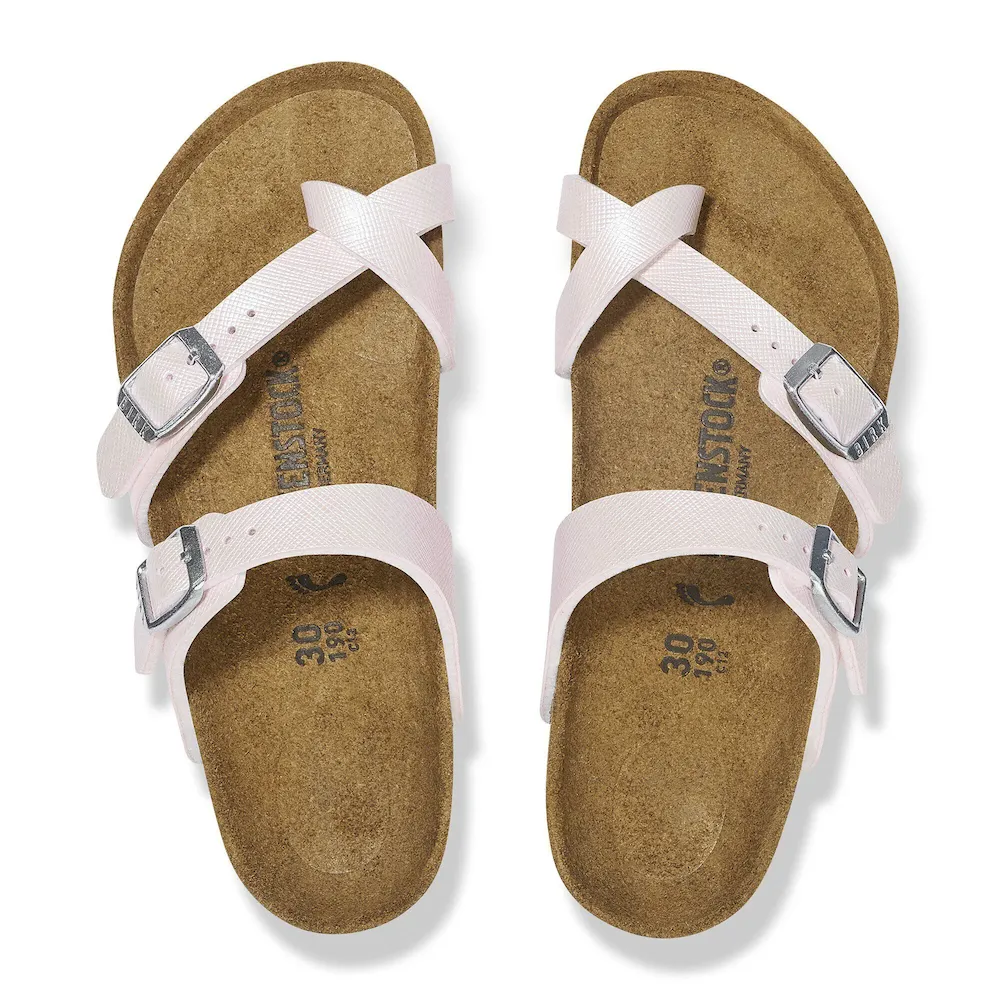 The Mayari sandal, shined up and sized down for kids. Embossed Birko-Flor® brings shimmer to their style. Featuring a toe loop and contoured BIRKENSTOCK® footbed to support them through days of play.