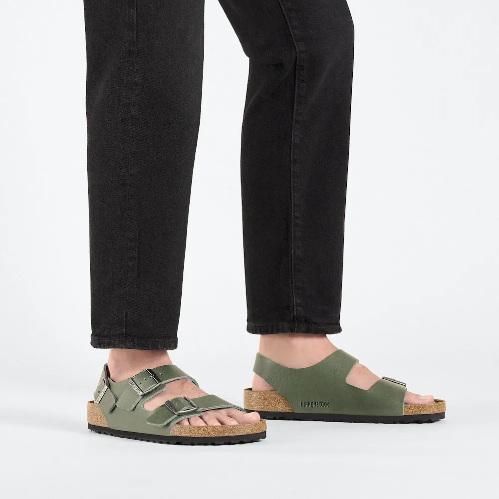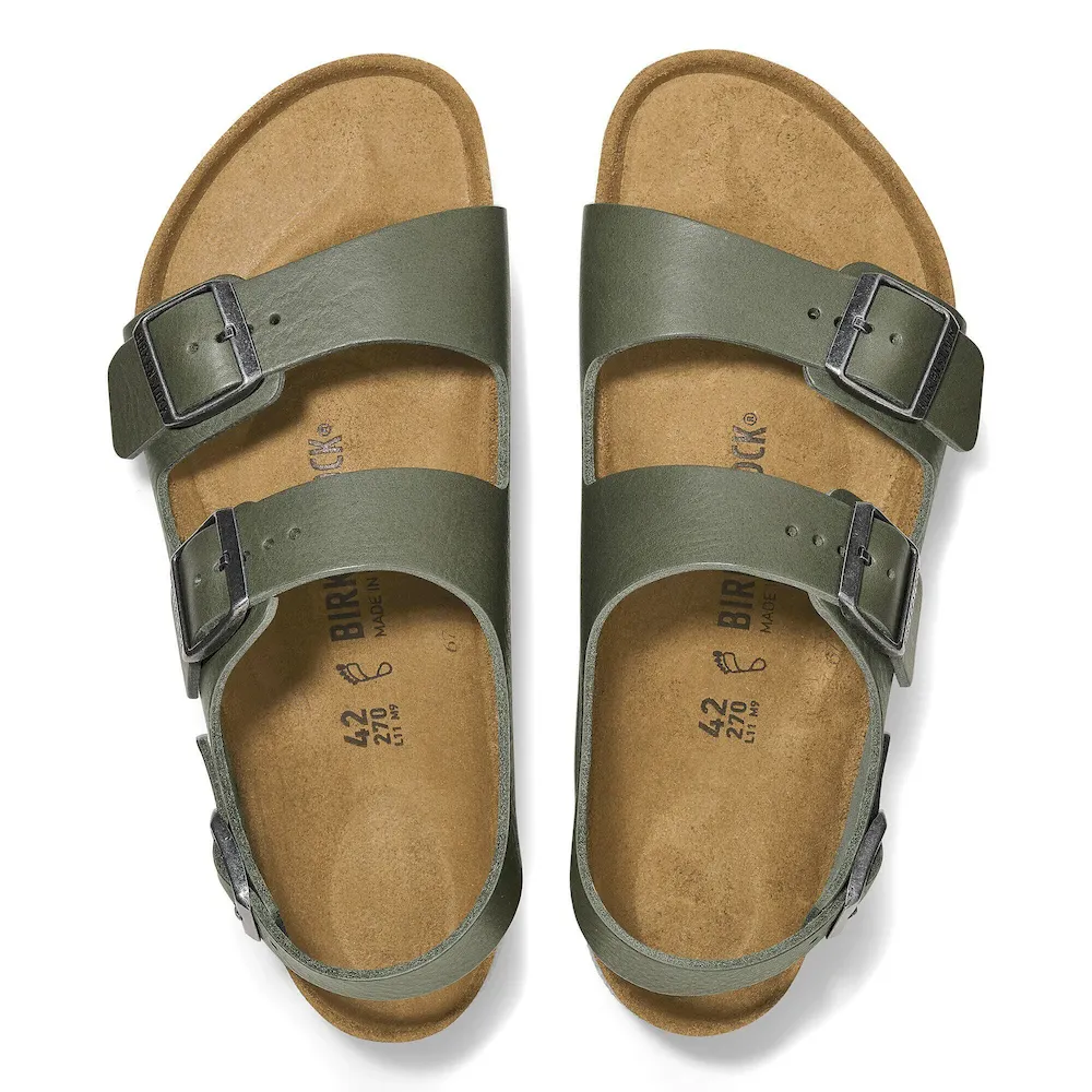 A leather look that can keep up. We outfitted the Milano with a unique rubber grip outsole and EVA midsole to give you enhanced traction and cushioning. High-quality, soft aniline leather revives traditions of leather goods manufacturers thanks to its unique surface texture. With an adjustable backstrap and original BIRKENSTOCK cork-latex footbed for the ultimate in all-day support.