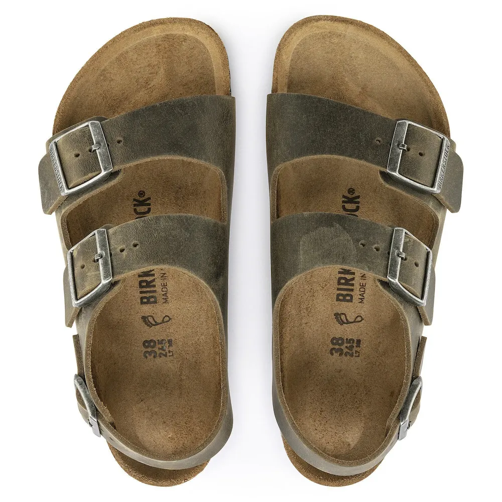 The BIRKENSTOCK Milano is a staple for style and comfort, with added security from the sturdy, adjustable backstrap. The upper is made from extra thick, oiled nubuck leather.