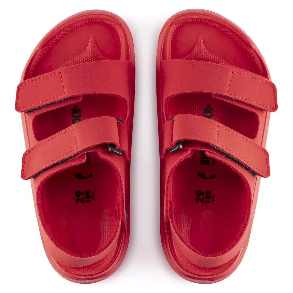 The perfect play sandal for kids and their everyday adventures! Totally waterproof. Incredibly durable. And, of course, wildly comfortable. The BIRKENSTOCK Mogami features a waterproof synthetic Birko-Flor upper, hook and loop straps and a contoured PU footbed for Birkenstock comfort and support.