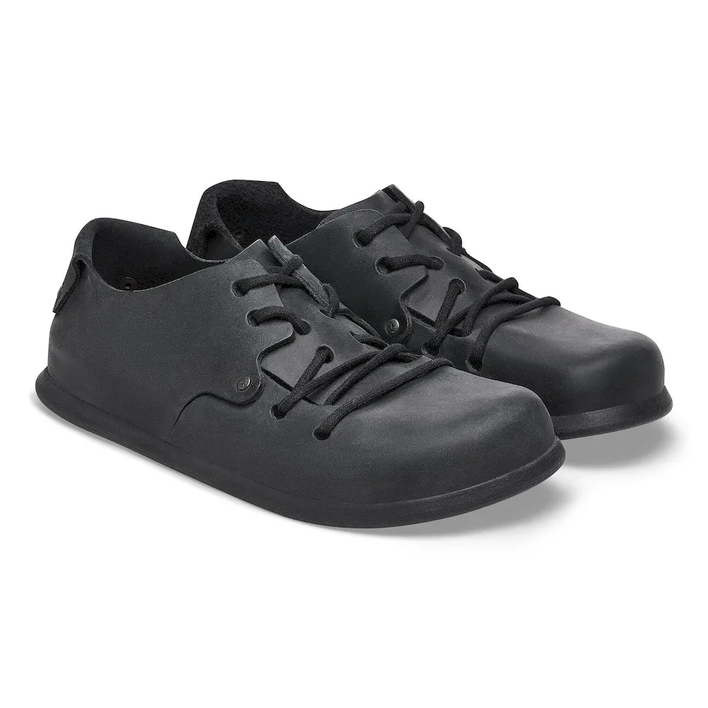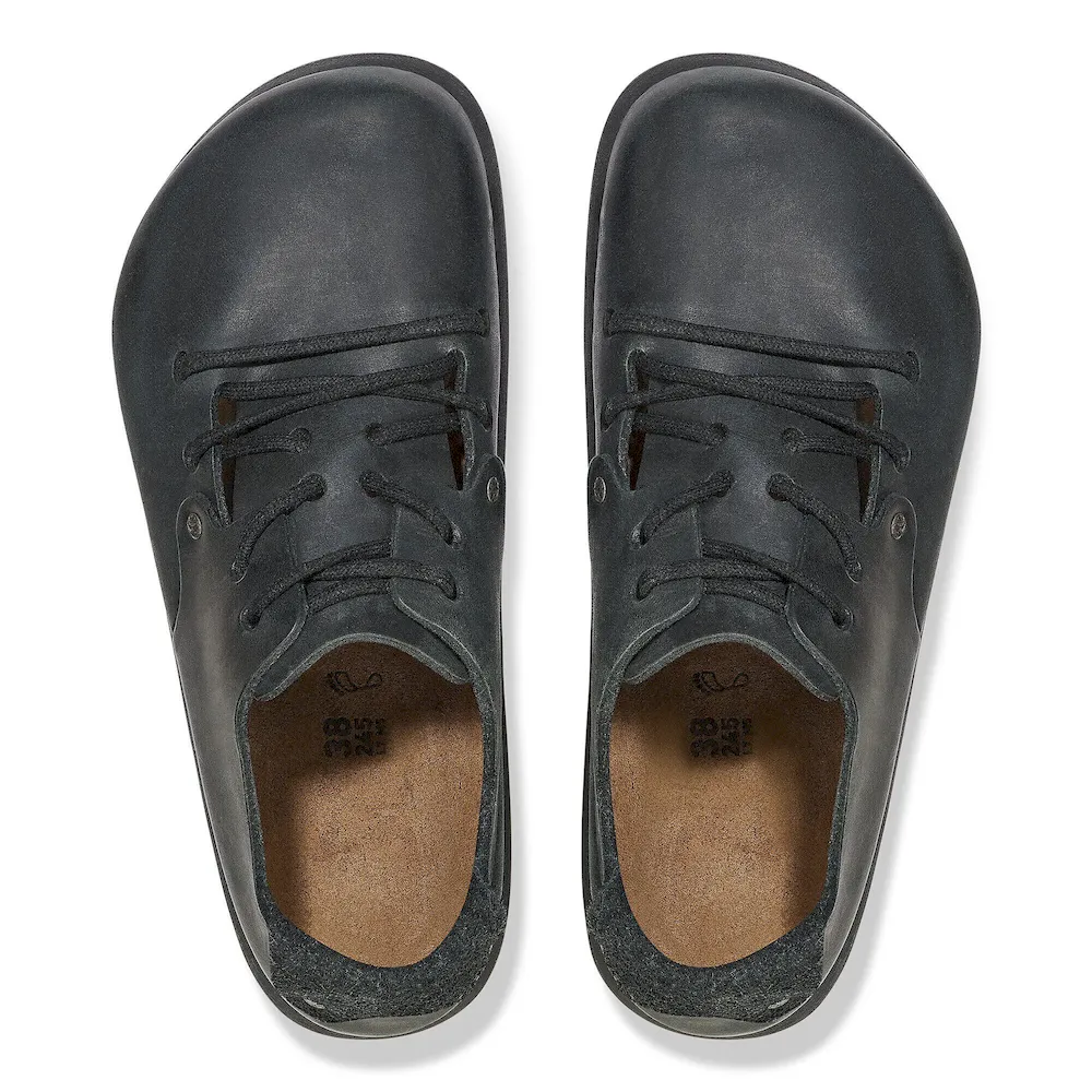 Simple yet sophisticated! The BIRKENSTOCK Montana features absolutely no stitching thanks to its special construction. The two upper sections are held together by two rivets and the novel lacing. The upper is made from extra thick, oiled nubuck leather with an open-selvage finish.