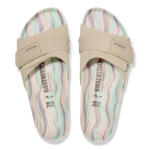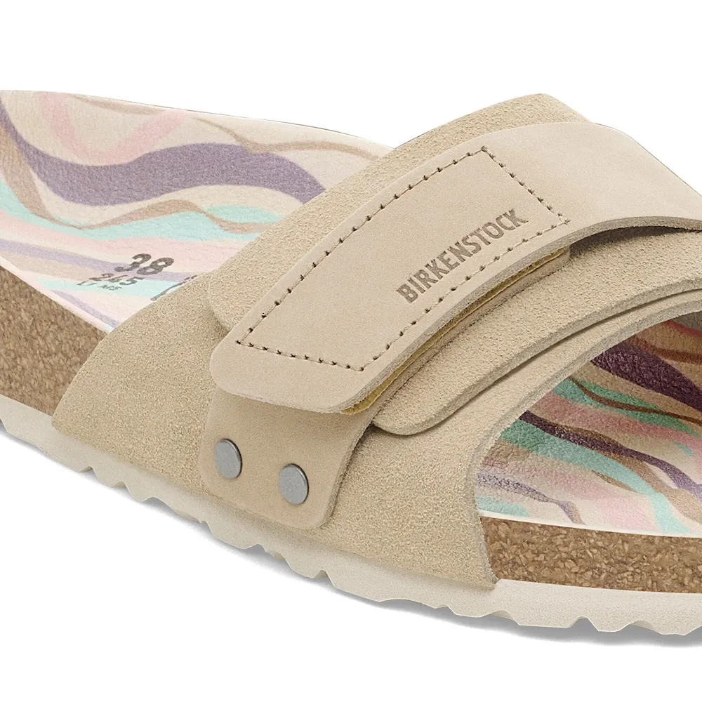Maximum comfort, minimalist-friendly design. The Oita sandal’s suede upper comes together softly over the foot, secured by a nubuck leather strap. A wavy printed footbed lining adds a surprise splash of color. Designed on our contoured footbed for support that never stops.