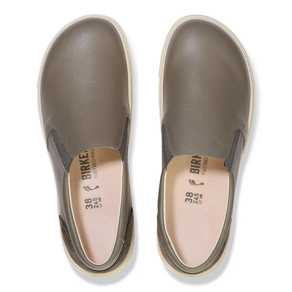 Natural leather can be recognized by its untreated surface. BIRKENSTOCK purposely does not treat surface grains and other characteristic features. BIRKENSTOCK uses sturdy leather with a thickness of 2.8 to 3.2 millimeters as upper material.
