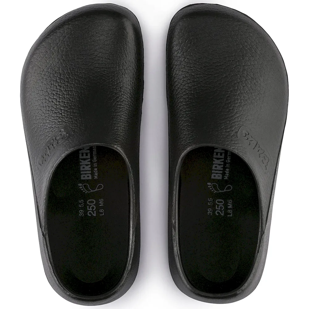 The Profi Birki clog reinforces on-the-job comfort from heel to toe. A closed back adds security, while its extended front keeps the forefoot safely enclosed. Fluid-resistant PU and a shock-absorbing, traction outsole makes it a fit for healthcare, hospitality and wherever you get the job done. The Profi Birki is grounded in trusted anatomic support—feel the footbed and you’ll feel the difference after long hours on your feet. Wash and disinfect the clog at up to 175°F and its removeable footbed at up to 140°F.