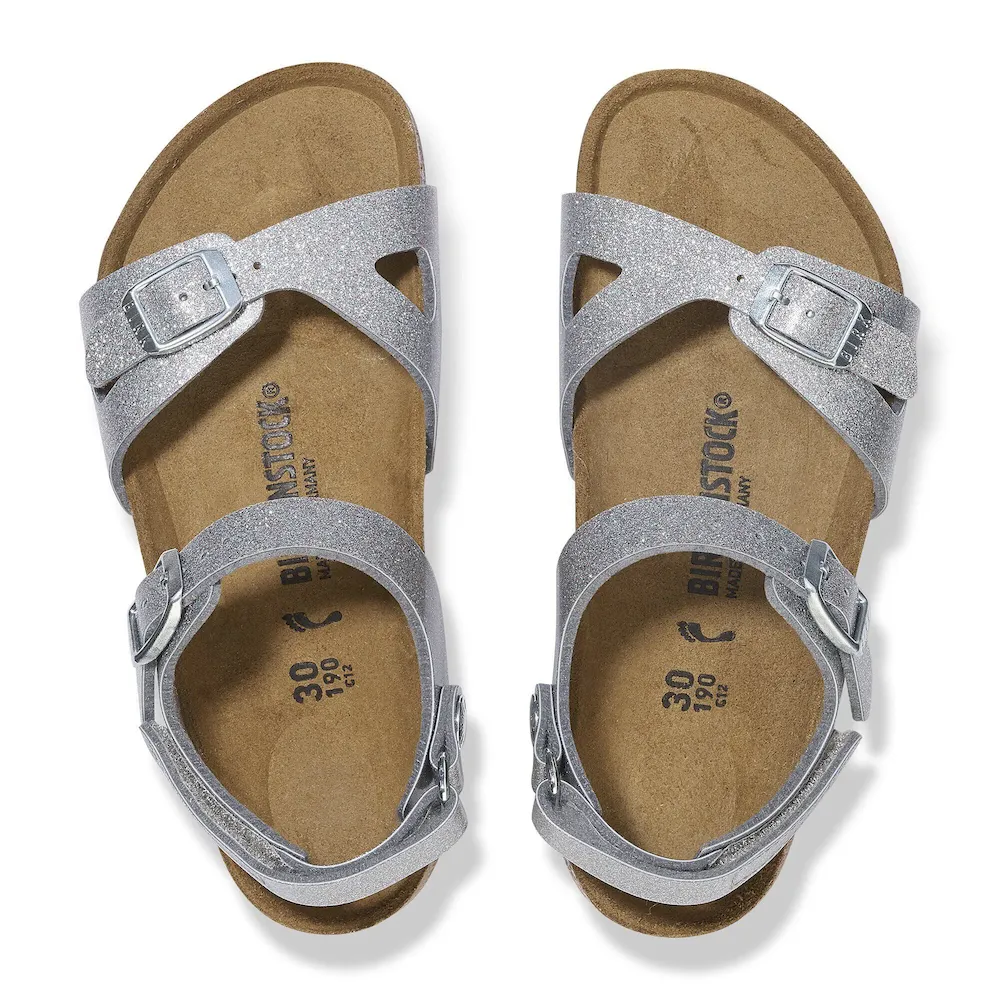 - Sparkly, coated Birko-Flor® synthetic upper