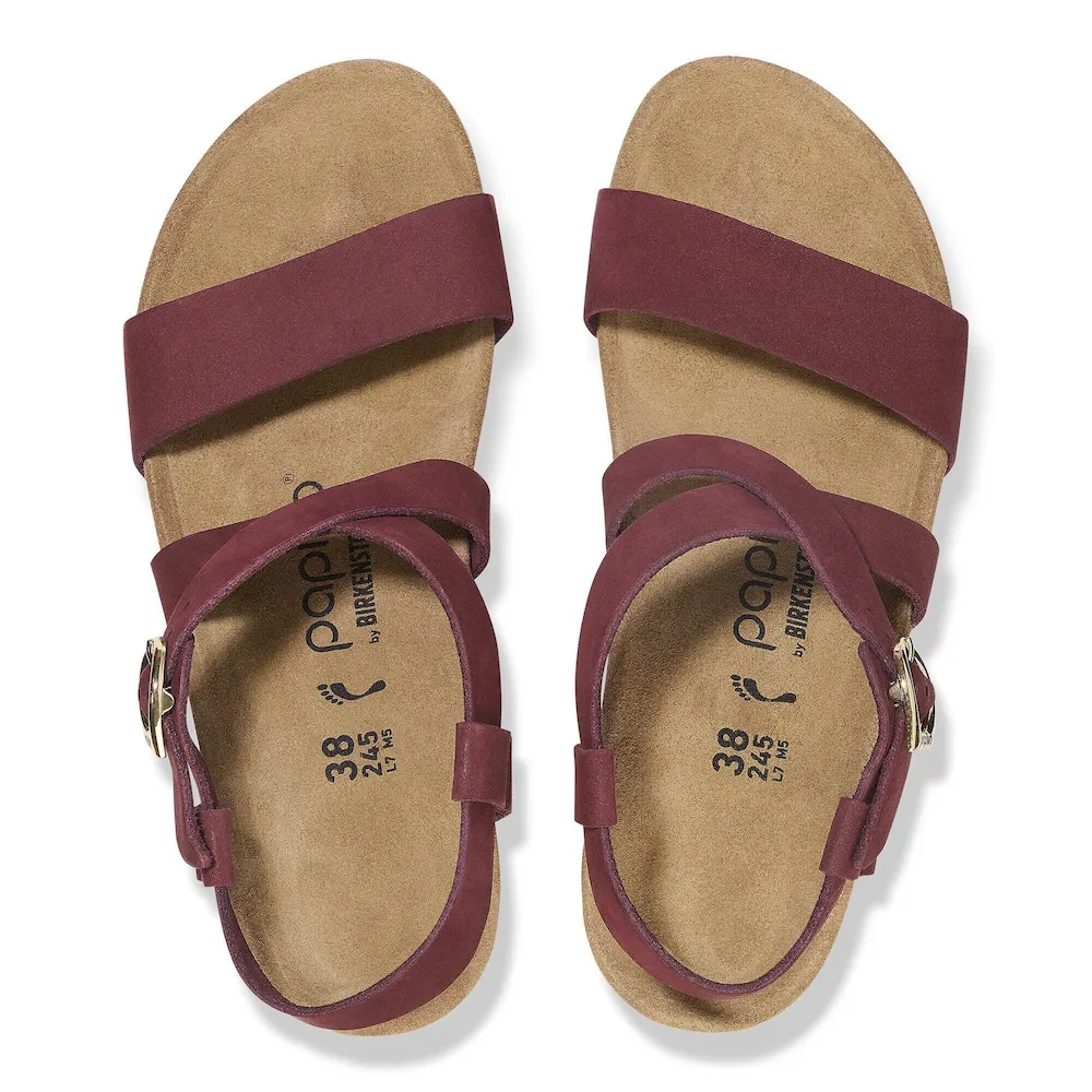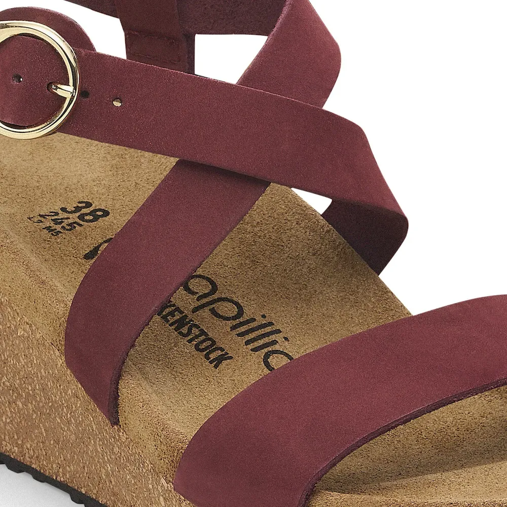 New from Papillio® by BIRKENSTOCK®, the Sibyl wedge levels up with comfort and ease. Nubuck leather straps crisscross comfortably across the foot, brought together by an elegant, rounded buckle. Lifted by a classic cork wedge, built around the contoured footbed you love.