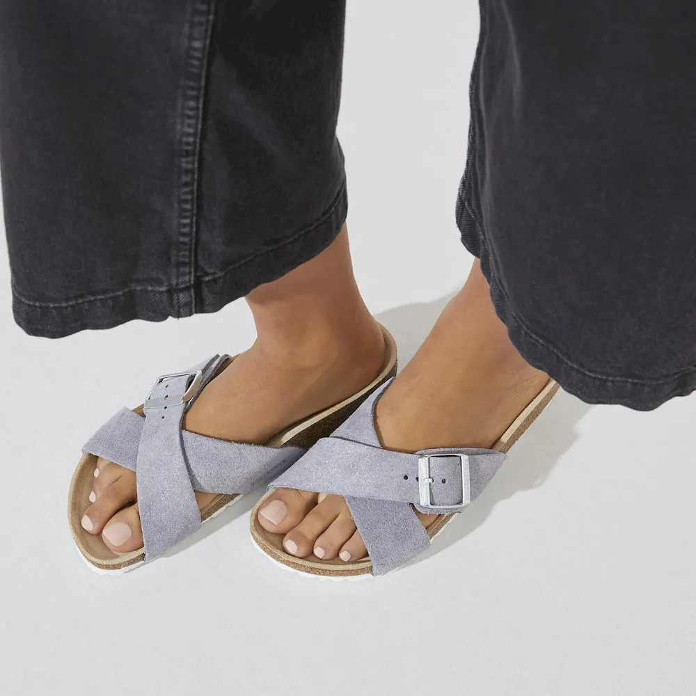 The BIRKENSTOCK Siena is a classic sandal, featuring crossed straps and a subtle shimmer finish. The upper is made from incredibly soft suede for added comfort.