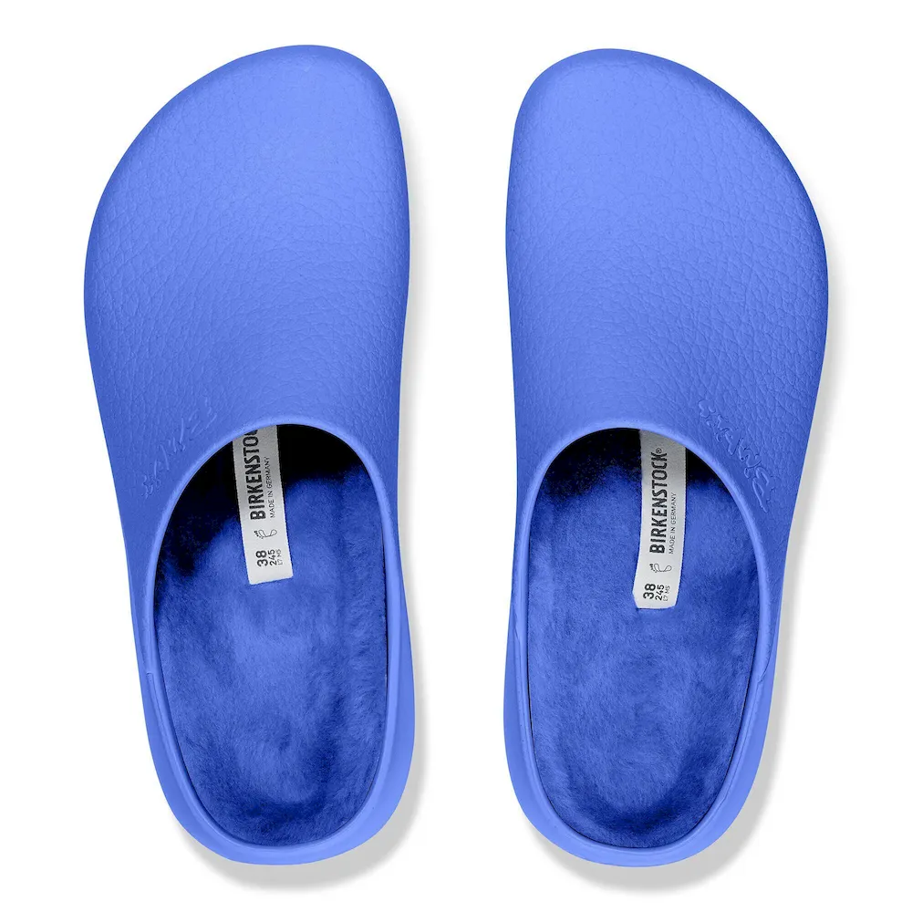 The Super Birki is an incredibly versatile shoe, perfect for everyday wear. This shoe is a fun splash friendly clog, featuring a shearling lining for extra warmth. The upper is made of polyurethane (PU), it is flexible, and water- and dirt-repellent for easy care.