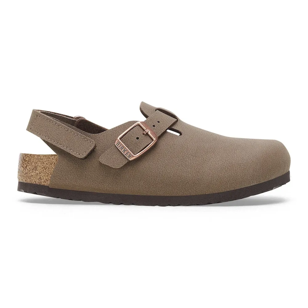 The adult favorite, sized down just for kids. The Tokio clog’s adjustable hook-and-loop backstrap keeps them secure in just their style. In signature Birkibuc® that’s durable for them and easy to clean for you. Sized down to support the littlest feet, this clog comes with all the comfort of our original contoured footbed.