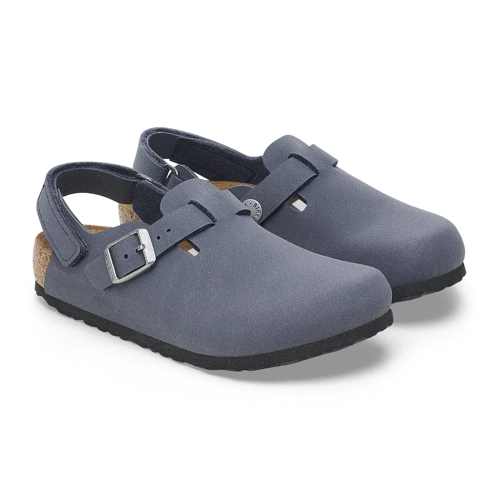 The adult favorite, sized down just for kids. The Tokio clog’s adjustable hook-and-loop backstrap keeps them secure in just their style. In signature Birkibuc® that’s durable for them and easy to clean for you. Sized down to support the littlest feet, this clog comes with all the comfort of our original contoured footbed.