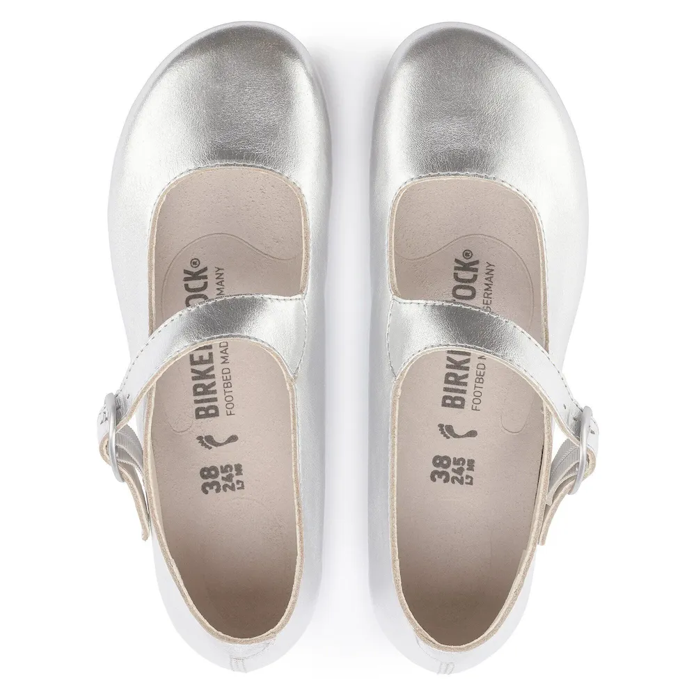 Back from the archives, the Tracy shoe evokes the delicate design of ballet flats above our signature footbed. The style comfortably pays homage to the feminine aesthetic with a diagonal strap and matte buckle. Designed on our contoured footbed for comfort that always feels on pointe.