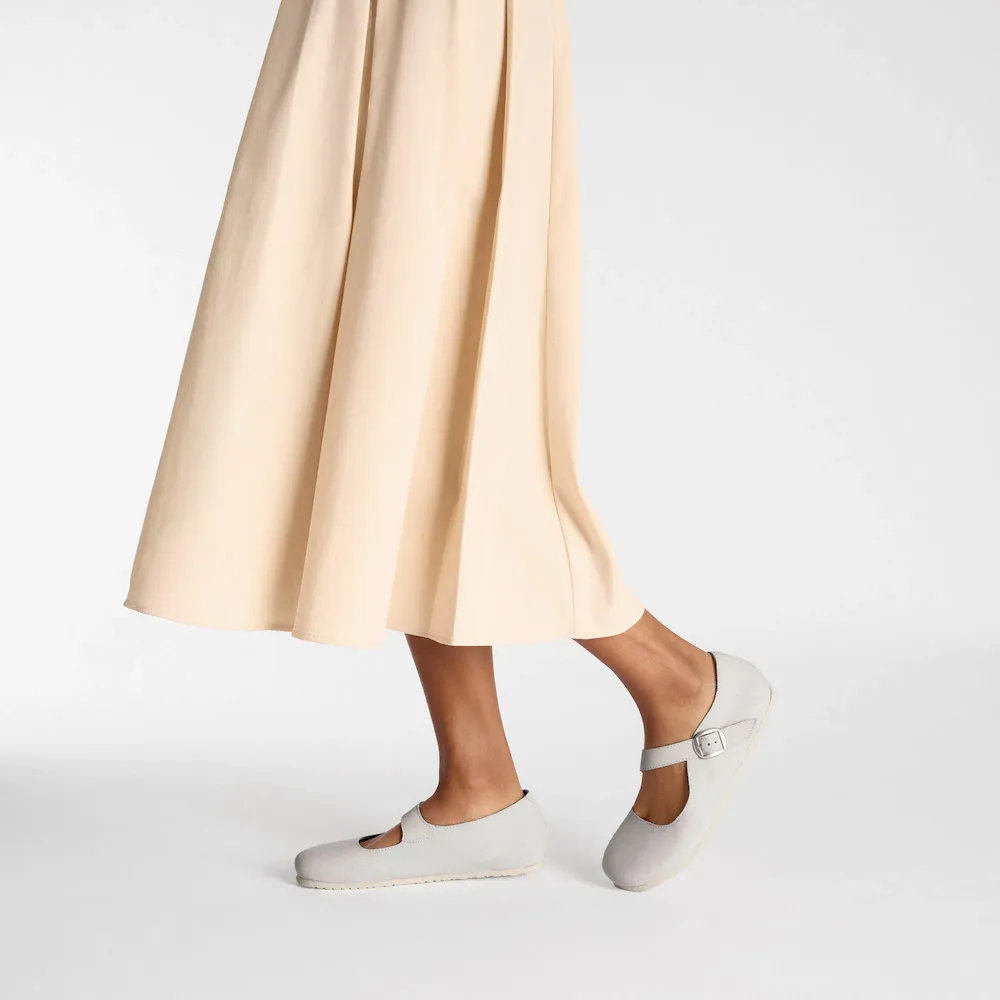 Back from the archives, the Tracy shoe evokes the delicate design of ballet flats above our signature footbed. The style comfortably pays homage to the feminine aesthetic with a diagonal strap and matte buckle. Designed on our contoured footbed for comfort that always feels on pointe.
