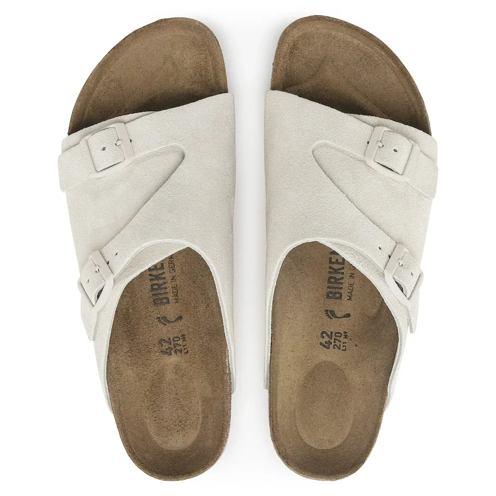 Back to celebrate 60 years as a fan favorite. The Zürich slide returns with its long-loved design, featuring extra coverage and adjustability from two metal pin buckles. Velvety soft suede lends a classic feel to the upper, above a supportive contoured footbed. As comfortable as you remember it.