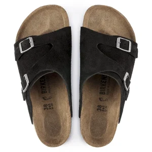Back to celebrate 60 years as a fan favorite. The Zürich slide returns with its long-loved design, featuring extra coverage and adjustability from two metal pin buckles. Velvety soft suede lends a classic feel to the upper, above a supportive contoured footbed. As comfortable as you remember it.